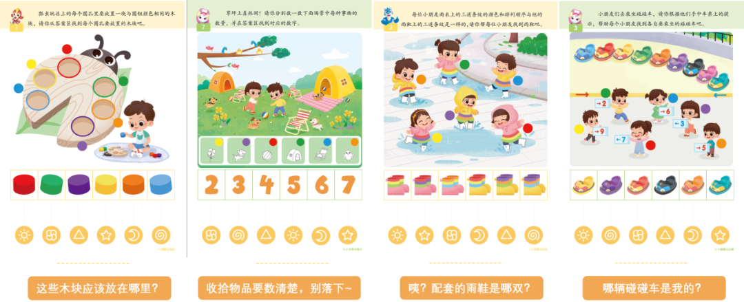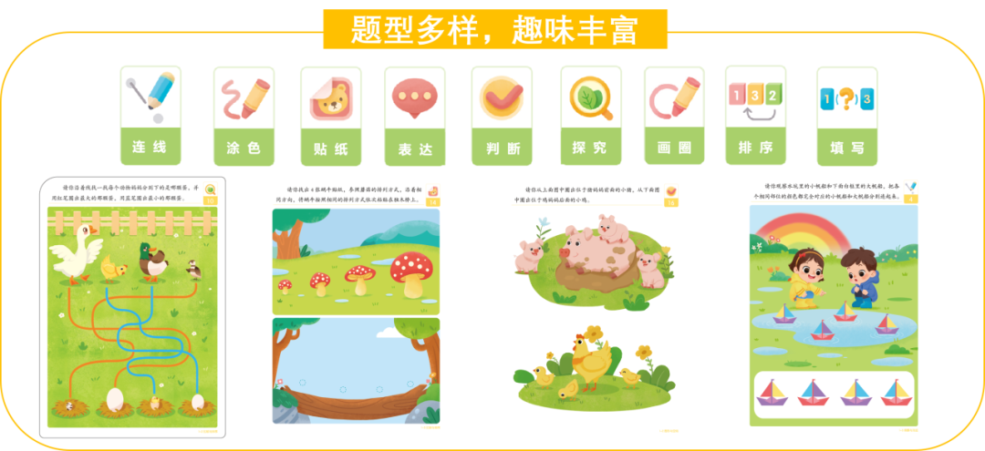 画面童趣,激趣引思;科学进阶,思维深入;题型多样,思维灵活。