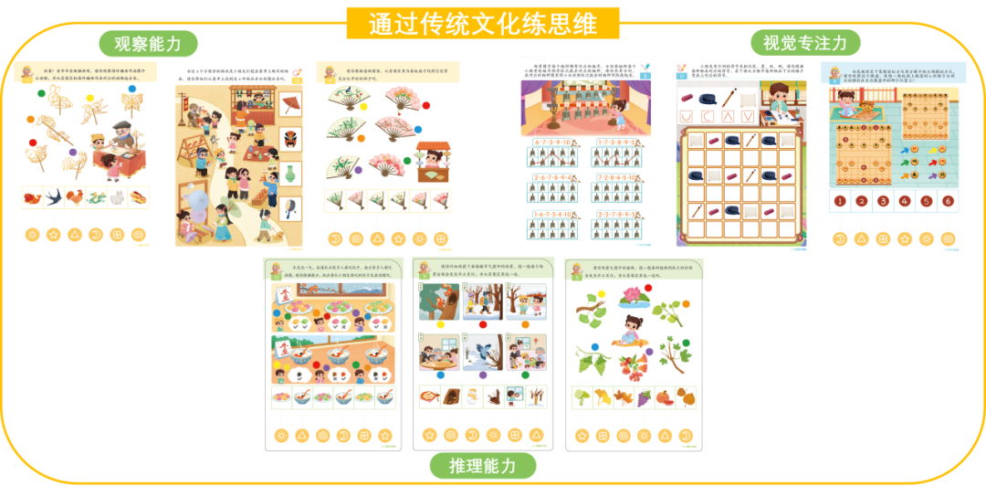 丰富有趣、题型多样的优秀传统文化内容,将思维游戏与传统文化完美结合,让幼儿感受优秀传统文化的智慧与魅力。