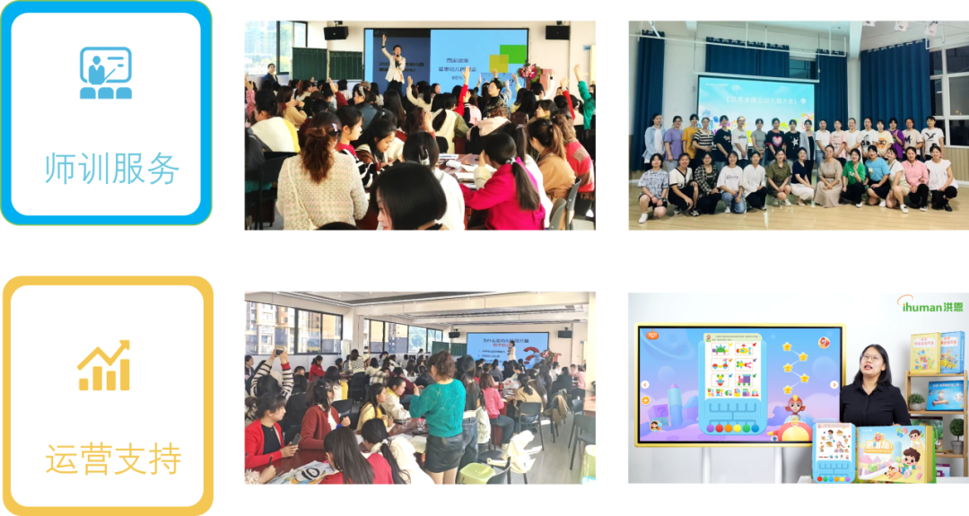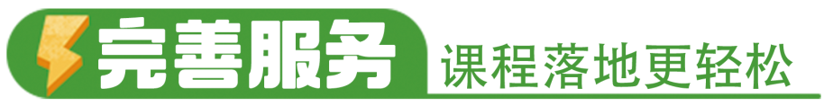 服务包括入门培训、提升培训、园所展示活动、技能培训、家长会支持、专家讲座和线上直播培训,使课程落地更轻松。