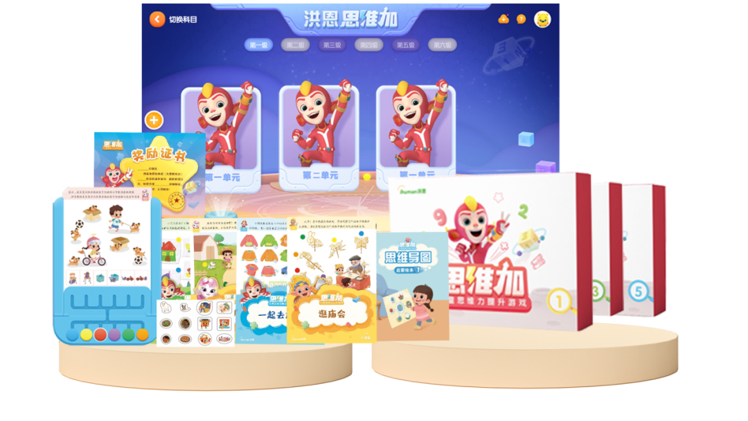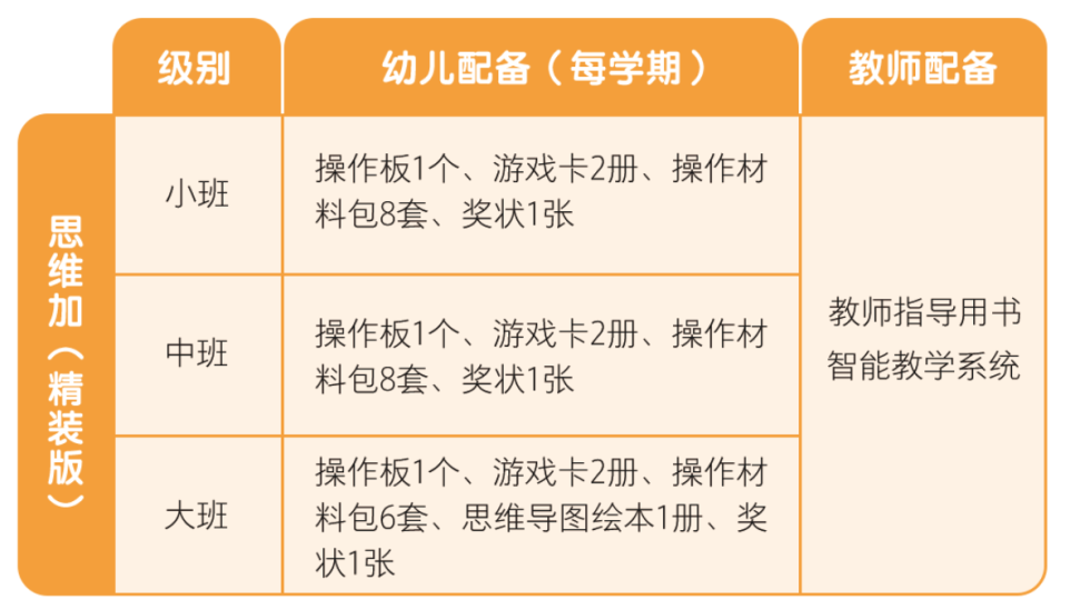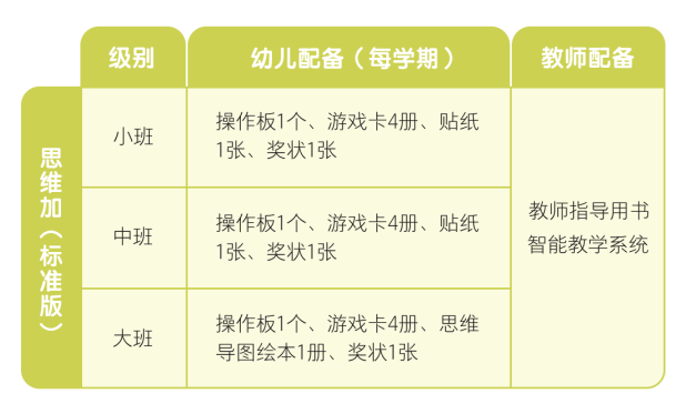 《洪恩思维加》分为标准版和精装版,均包含六个级别,分别适合幼儿园小、中、大班上、下学期使用。
