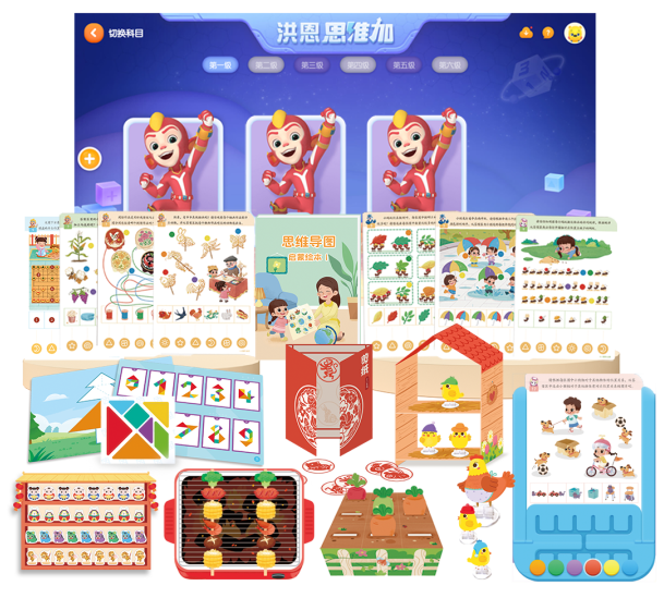 多层次、多样化的操作材料,含操作板、游戏卡、操作材料包、思维导图绘本等,让思维探索学习更有趣,思维能力培养更高效。